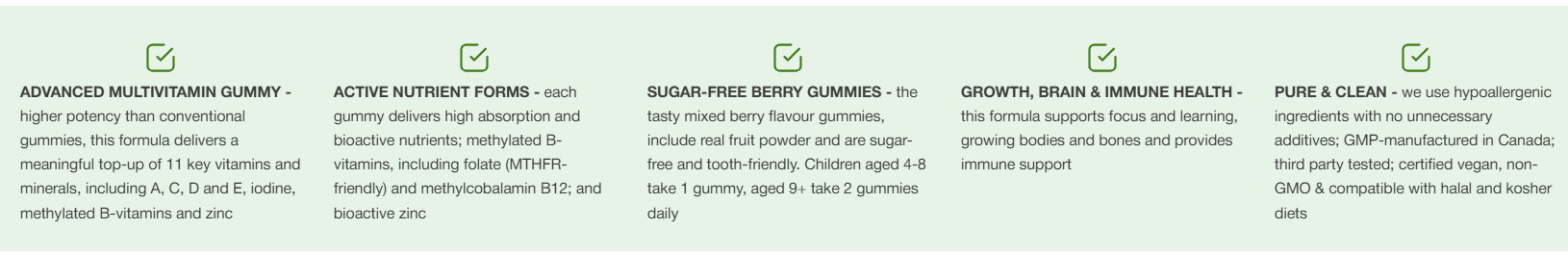 Kids Multivitamin with Methylated B-Vitamins, Iodine & Zinc, Clean & Sugar-Free, for Children aged 4+, 90 Gummies