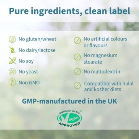 This product should not be used as a substitute for a varied and balanced diet and healthy lifestyle. Seek professional medical advice before taking any food supplement if you are pregnant or breastfeeding, or taking medication. Store in a cool, dry place and away from sunlight. Keep out of the reach of children.