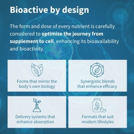 Curcumin is a flavonoid extract of turmeric root but it is poorly absorbed in the body and rapidly metabolised into inactive forms. Longvida® Optimised Curcumin harnesses a patented lipid delivery technology that offers 285x greater bioavailability, 65x higher peak plasma levels, and 7x longer-lasting action than standard curcumin. Longvida curcumin is highly stable and highly soluble, optimised to deliver free curcumin (the active form that is not metabolised or glucuronidated) into the bloodstream and target tissues.