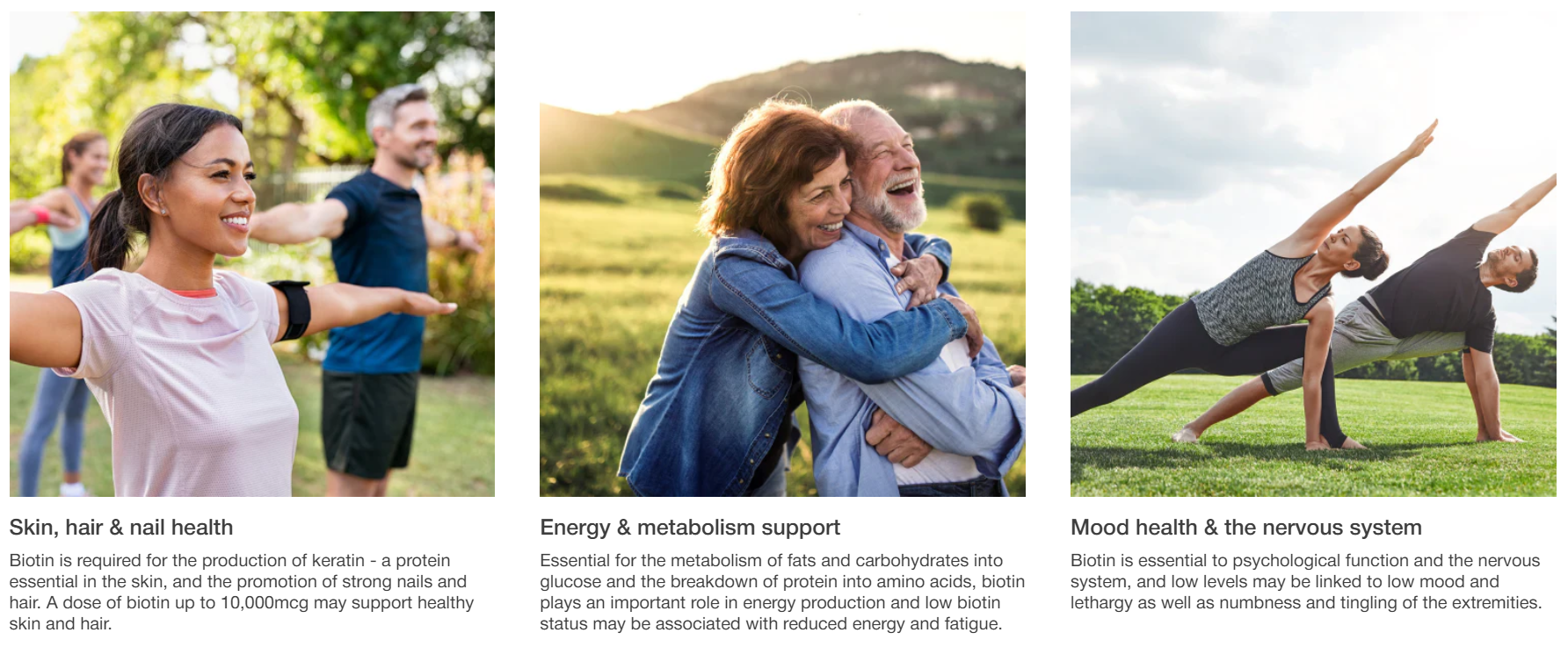 MULTIPLE HEALTH BENEFITS – 10,000μg biotin supports energy and metabolism, mood health and the nervous system
