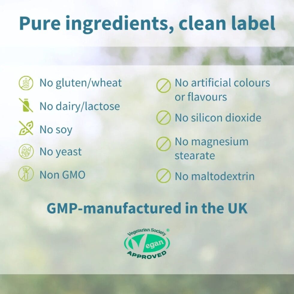 This product should not be used as a substitute for a varied and balanced diet and healthy lifestyle. Seek professional medical advice before taking any food supplement if you are pregnant or breastfeeding, or taking medication. Keep out of the reach of children. Store in a cool, dry place and away from sunlight.