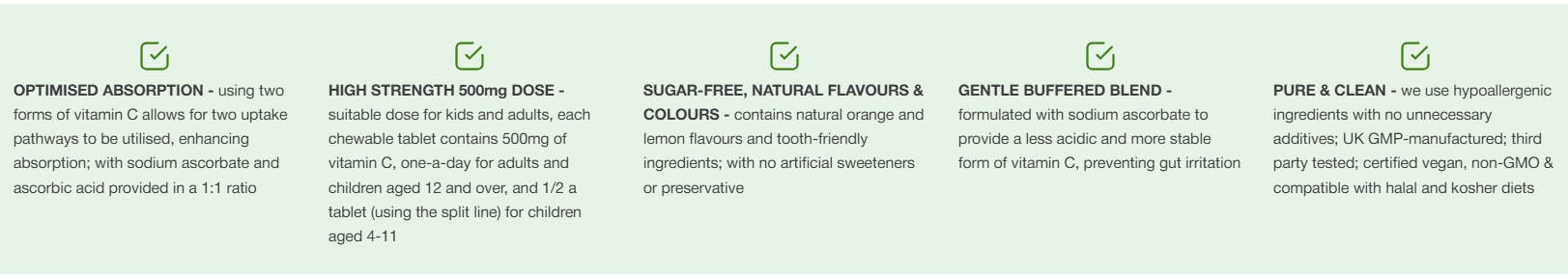 We often get asked many questions about our products, so our nutritionists have compiled this downloadable product information guide to ensure you get the most from taking our Vitamin C 500mg Chewable. Find out when to take it, at what dose and how to maximise absorption for optimum results.
