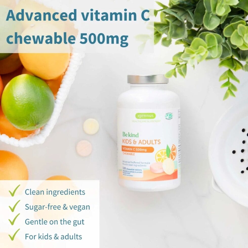 Igennus Vitamin C Chewable contains only hypoallergenic ingredients, with no unnecessary additives. With natural orange and lemon flavours and natural colours, this tooth-friendly formula is sugar-free and contains no artificial sweeteners or preservatives.